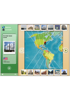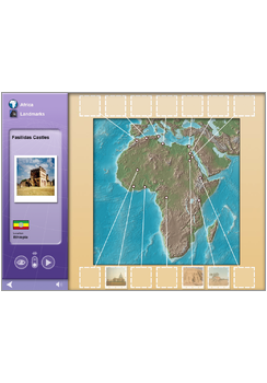 Select a continent and explore it. Try to memorise the locations of the countries, cities and landmarks, do a practice game, and then test yourself against the clock. You’ll be awarded points for correct answers, and you can review your progress on any of the continents and topic areas to see how well you’re doing.
